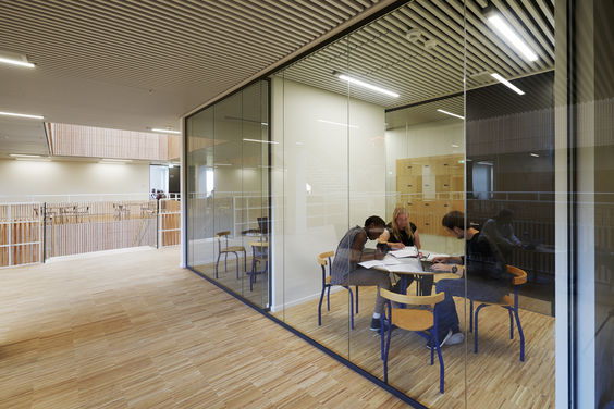 This new campus in Danish island Bornholm brings all its major youth educations in a one-in-all common supercampus. The site’s existing brick buildings are integrated in new complex with panel clad buildings, which create an inner logical hierarchy. Common functions for the whole school are gathered around a large central square, while the many various individual educations are organized along smaller and secondary squares and streets. In the varied inner environments, students interact with each other across the different fields of study. The project was won and carried out as sub consultant to CUBO architects. From the beginning, sustainability has been a focus of attention, resulting in energy initiatives such as cooling concrete floors, recycling of rainwater and a high focus on recyclable materials. The wide inner corridors can be used for events. Here the former outer facades give interesting exterior effects on the inside.
